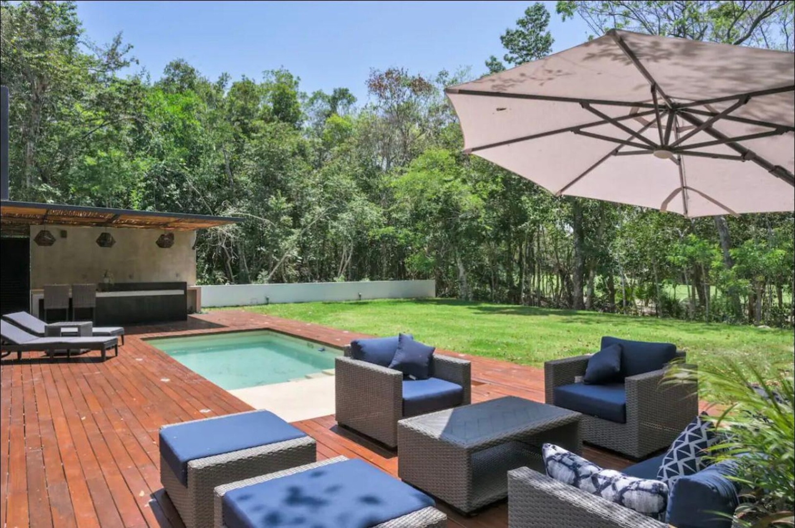 Escape to this stunning 4-bed, 4.5-bath modern villa, your ultimate jungle oasis! Experience seamless indoor-outdoor living with elegant open spaces, an indoor garden staircase, and beautiful local finishes. Relax by your private pool, soak up the sun on the deck, or unwind in the spacious lounge terrace. Nestled in nature but offering pure luxury, it’s the perfect retreat for your getaway. Book your unforgettable stay today!